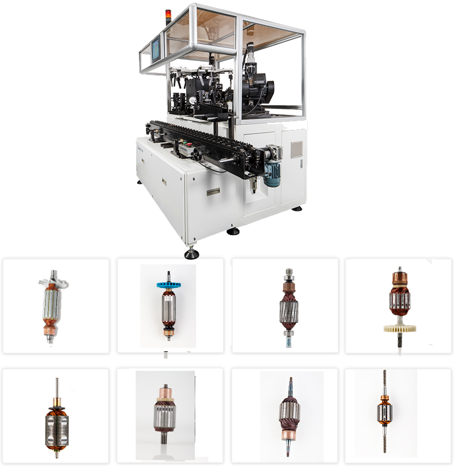集智該款五工位全自動平衡機適用短疊高、高平衡要求的3 5 7系微電機轉(zhuǎn)子動平衡校正,可兼容部分外徑40mm以下無刷轉(zhuǎn)子動平衡校正